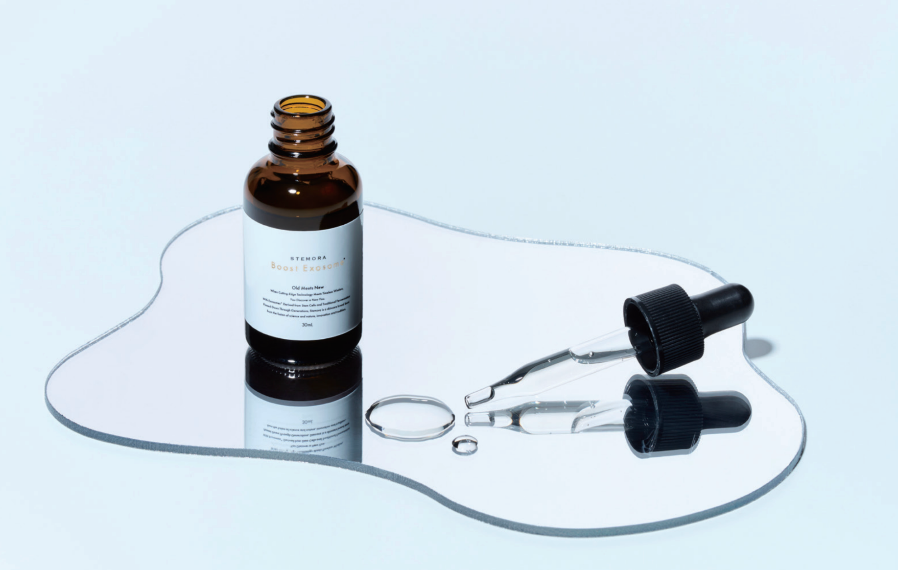 細胞研究の知見から生まれたBoost Exosome®︎(ヒト脂肪由来幹細胞順化培養液 *²)」を主要成分とした「STEMORA ブーストEXO美容液」。